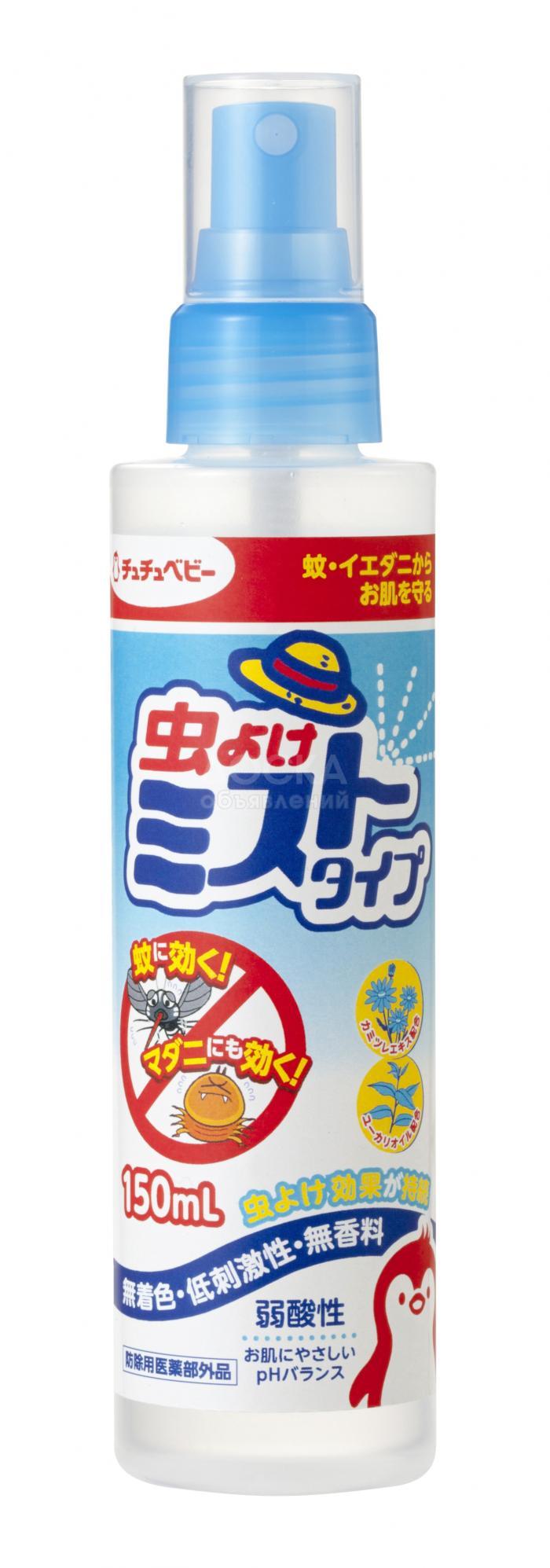Лёгкое в применении средство в виде спрея. Распылите средство на кожу, и оно защитит ребёнка от укусов клопов, комаров. Не приносит вреда коже, так как имеет одинаковый с кожей щелочной баланс pH6. В состав входит экстракт ромашки, увлажняющий кожу. Также содержит масло эвкалипта, оказывающее успокающее действие на кожу. Имеет долговременный эффект. Не содержит ароматизаторов, красителей, не раздражает кожу. Содержание диэтилтолуамида - 5%. Пройден тест на аллергию.