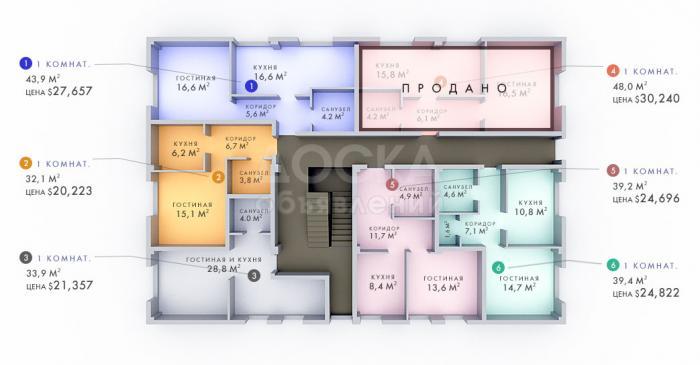 5 этаж — 590$/м².