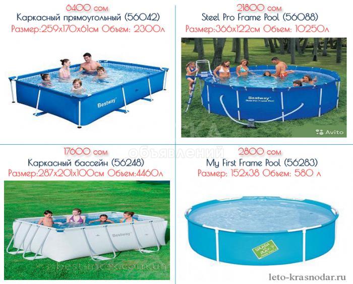 Бассейны и матрасы надувные и каркасные от akula.shop.kg, бесплатной доставкой на дом, разных размеров и видов