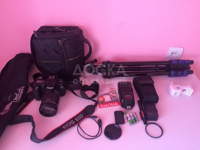 К фотоаппарату прилагается: фотоаппарат Canon 60D + объектив Canon EFS 18-135mm , коробка к фотику, бленда, usb кабель, ремешок canon eos 60d, сумка, карандаш для чистки, крышка объектива, флэшка карта 16gb class 10 (за доплату в $20 могу поменять на 32gb class 10), зарядное устройство, батарея + дополнительная батарея. На дисплей предусмотрительно закреплена специальная защитная плёнка толстая.