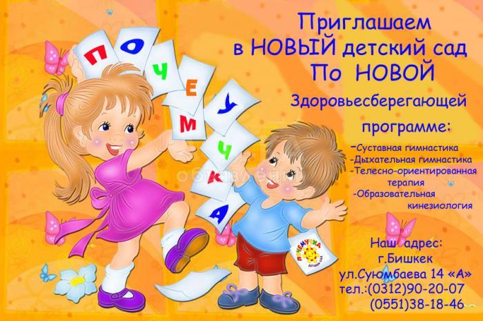 Детский сад "ПОЧЕМУЧКА" г.Бишкек . ул, Суюмбаева 14 А, тел (0551)38-18-46, (0312)90-20-07
