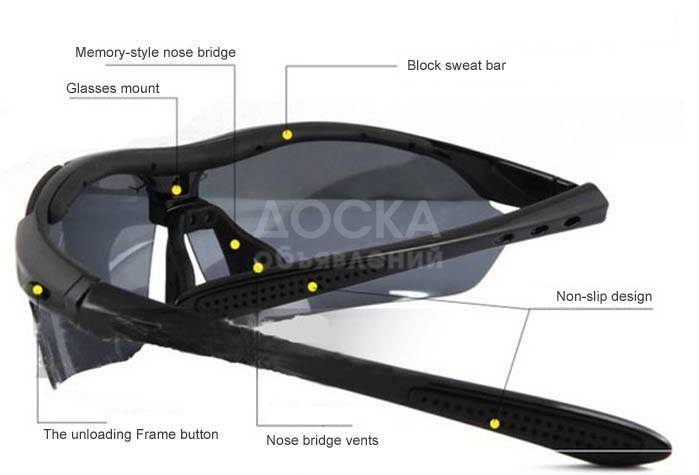 2) набор из 5 стёкол (материал - поликарбонат, уровень защиты от ультрафиолета -V400):