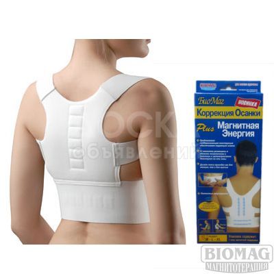 Магнитная поддержка осанки помогает облегчить болевые ощущения и исправить плохую осанку. Она плавно отводит плечи назад, что позволяет держать шею и голову прямо, вследствие чего выпрямляется спина. Магнитная поддержка проста в применении и не создаёт дискомфорта. Невесомая конструкция позволяет носить её под одеждой. Внутри особым образом расположены 12 магнитов с индукцией 35 мТл, которые оказывают воздействие на область позвоночника и поясницы. Действие магнитов (магнитная индукция) способствует снятию отеков, восстановлению нервной и сердечно-сосудистой системы, усилению кровообращения, релаксации мускул и снижению боли. Размеры: S (40-42), M (42-44), L (46-48), XL(50-52), XXL (54-56)