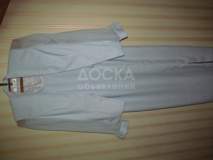 состояние хорошее. на высокую и худенькую. костюм и платье по краям расшито бисером.