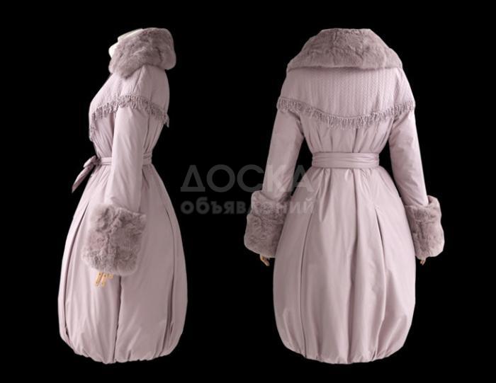 Цвет- бледно лиловый. Красивый, теплый, оригинальный и удобный пуховик!