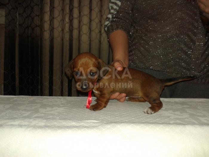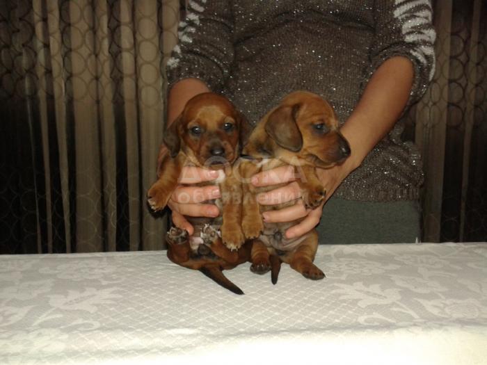 Продаются щенки таксы с родословной ,клеймо на ушке стоит ,в клубе охотничьем зарегистрированы.Едим отлично , гавкаем , дерёмся ,очень любим ласку .Унас живут в доме.Девочка и мальчик родились 17 октября.цена от5000-4000 т .сом тел. 0555499330 Оля .