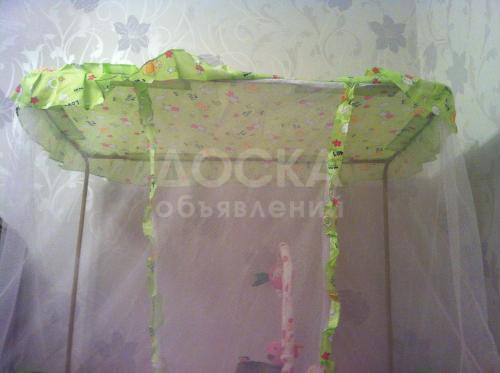Продаю детскую кровать-манеж! С ортопедическим кокосовым матрасом! Состояние нового! Деревянная с ящиками для одежды и балдахином.