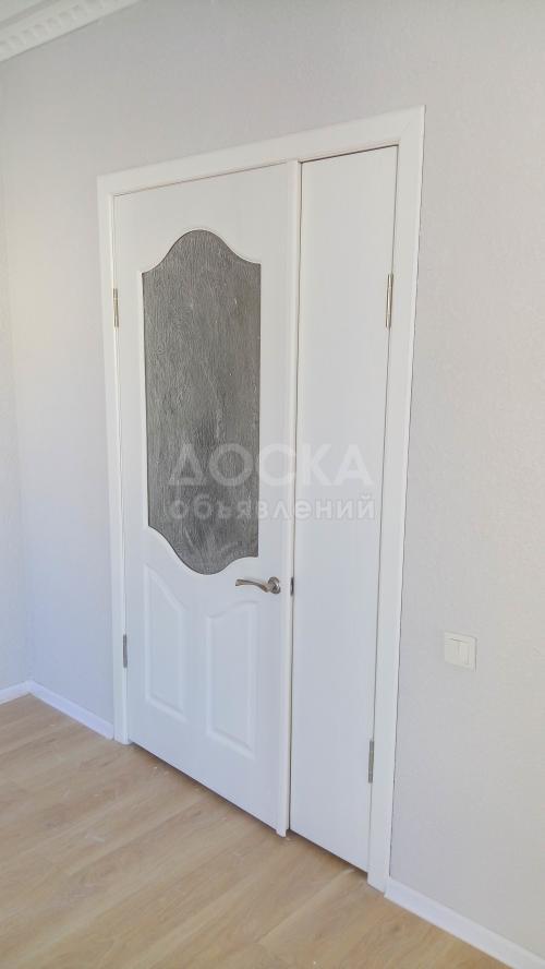 Квартира была под самоотделку, ремонт уже сделали. Входная дверь - бронированная, хорошие межкомнатные двери. Три окна - пластиковые рамы.