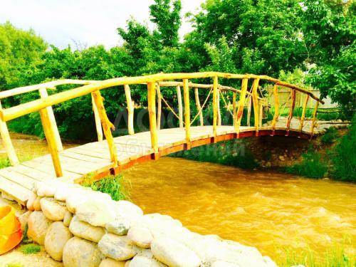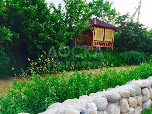 По территории протекает речка, есть конюшня.