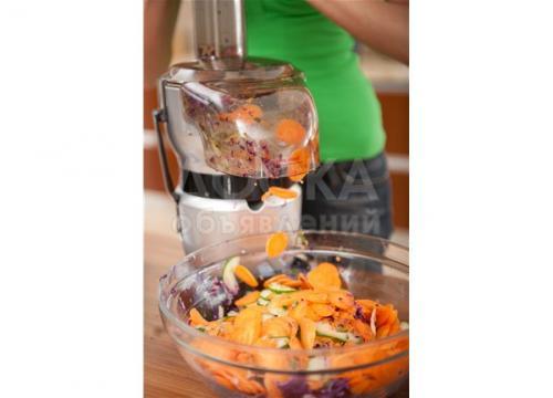 — Нарезает, крошит, измельчает, выжимает сок в считанные секунды.