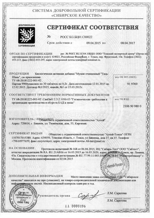 Мумие Тянь Шань Высочайшего качества травы, масла, крема, жиры