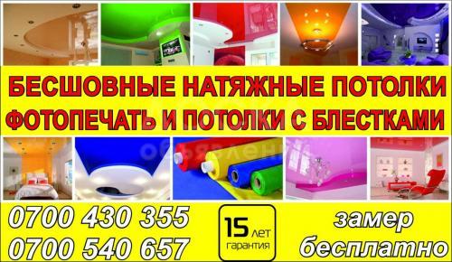 Бесшовные натяжные потолки, фотопечать и потолки с блестками.