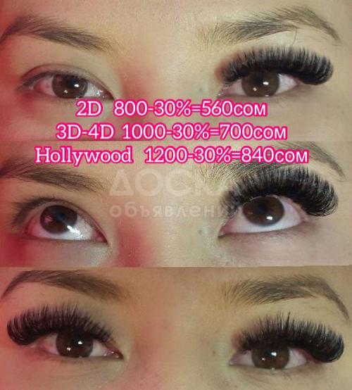 Наращивание ресниц 2D 800-30%=560сом