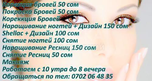 Коррекция Бровей 50 Сом, Покраска Бровей 50 сом,