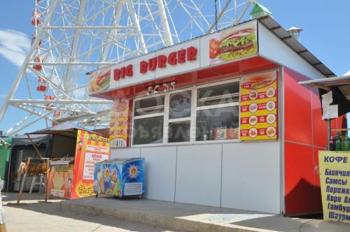 Сдаю в аренду павильон , предназначенный для продажи готовой Фаст-фуд продукции. Внутри имеется все необходимое оборудование и предметы для приготовления продукции (тостер , печь для обжаривания котлет , два холодильника (один из них витринной) , стол и к