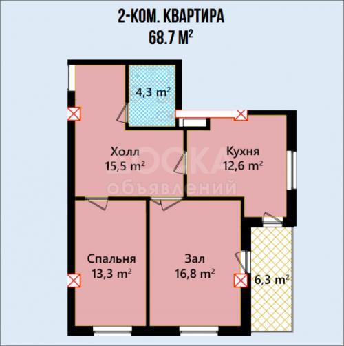 2 комнатные 69-75 кв.м.