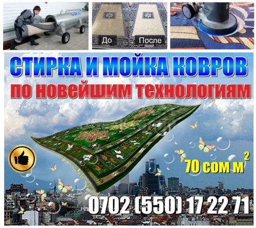 Стирка, сушка ковров на турецком оборудовании за 1 день 1кв.м.- 70 сом