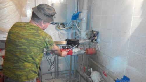 Алмазное бурение тут лучший помощник. Ровное без сколов отверстие по диаметру трубы, и самое главное сделанное без лишних трудностей и шума!