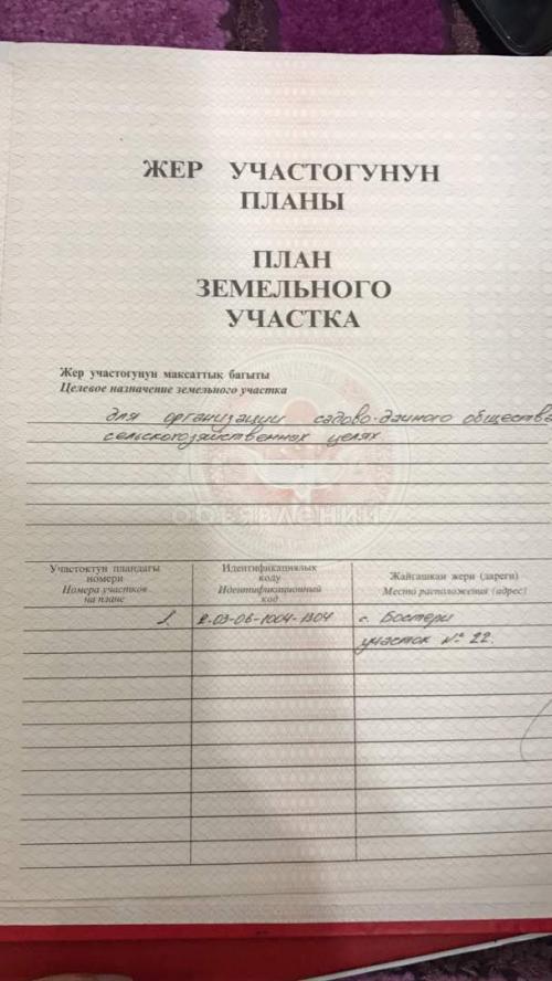 Продаю Участок Ыссыкульский район с. Бостери