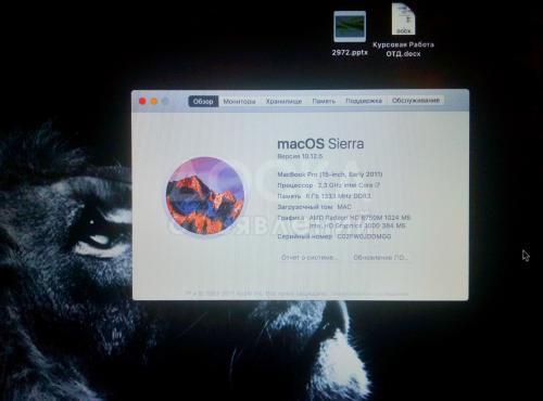 macbook pro 15 дюймов. intel core i7 процессор, 6гб ОЗУ, 120Гб SSD и 500Гб HDD, 1Гб видео карта