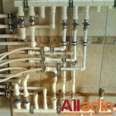 - разводка водопроводных труб холодного и горячего водоснабжения, (металлопластик пресс, полипропилен, сшитый полиэтилен);