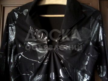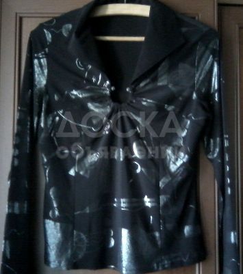 Красивая черная блузка с серебристым принтом. Размер 44 - 46.