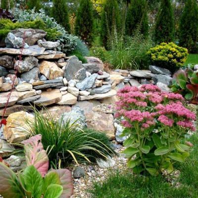 -Альпийские горки, фонтаны, водоемы.