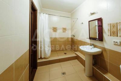 370м2, 3 уровня, район Манаса/Ташкентская, участок - 4,5 сотки, стены - 2 кирпича; двери и лестница из карагача; установлены кондиционеры. Здание полностью утеплено пенополиуретановой пеной. Мебель и оборудование остаются. Для удобства имеются сауна и бассейн. Год постройки 2015-й.