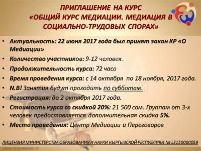 Более подробная информация по запросу на электронный адрес: office@mediation-centre.kg