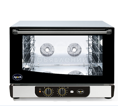 Продам новую конвекционную печь apach ad46m для кафе, баров, пекарен и ресторанов. Конвекционная печь apach ad46m на 4 уровня под противни 600х400 мм, а также gn 1/1, подходит как для выпечки так и для гастрономии. Камера оснащена двумя реверсными вентиляторами. Печь имеет механическое управление и инжекторный тип подачи пара. Камера оборудована подсветкой, температурный режим 0-280 С. Камера легко чистится благодаря закругленным углам. Корпус выполнен из нержавеющей стали, дверца - из двойного закаленного стекла. Габаритные размеры 800х700х580мм. Мощность 6.7 кВт. Напряжение 220 В, 380В. 0558415815