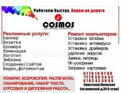 Ремонт компьютеров Рекламные услуги Курсовые работы, СРС, Дипломки, Доклады и.т.д