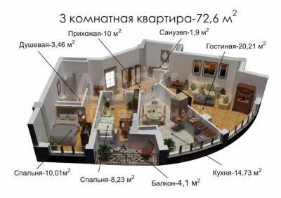 Продаю квартиру 3-ком., 72кв. м., этаж - 8/10, медерова алматинская.