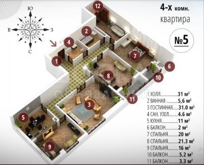 Продаю 4-х к. квартиру 161м2 псо в 7 микрорайоне (Глобус), 7 этаж из 13