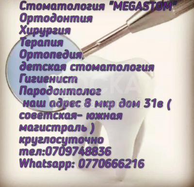 Круглосуточная стоматология. ⭐все виды стоматологических услуг! ⭐безболезненное лечение зубов. ⭐удаление зубов ⭐протезирование ⭐установка брекет систем ⭐детский стоматолог ⭐лечение десен. адрес: г. бишкек 8мкр 31в Советская/Юж. магистраль. клиника "МЕ