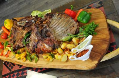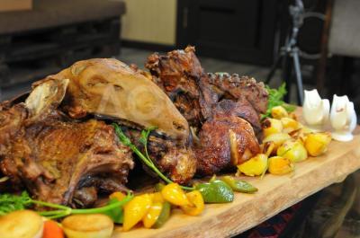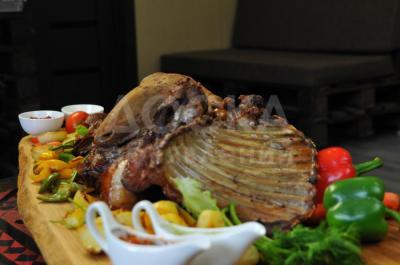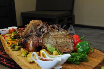 Цена 1 туши готово ягненка+1,5 жаренной картошки+1,5 овощей на гриле+соусы 9 500 сом
