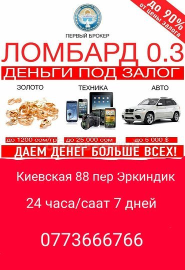 Ломбард 0,3 принимаем золото,электронику(телефоны,жк телевизоры, компьютэры,ноутбуки,планшеты,цифровые фотоаппараты,макбуки и т.д.) по выгодным для обеих сторон % г.Бишкек киевска 88 при пересечении ул Дзержинской тел.:0702753533
