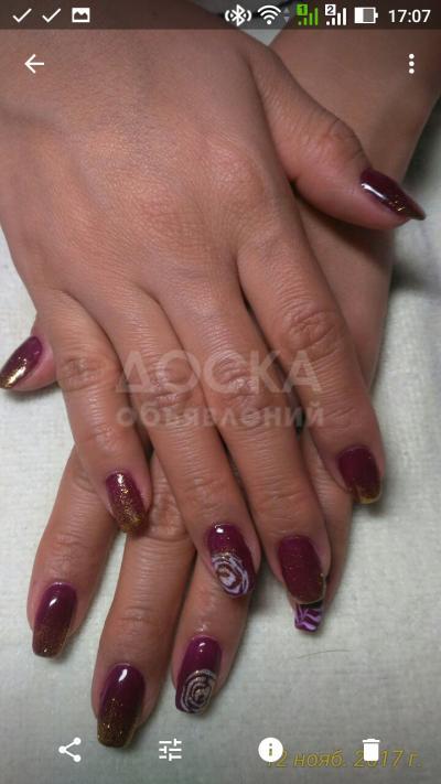 Маникюр,педикюр+шеллак+дизайн,наращивание ногтей от 400сом и выше,наращивание ресниц все по 600. С выездом и на дом от 100сом.
