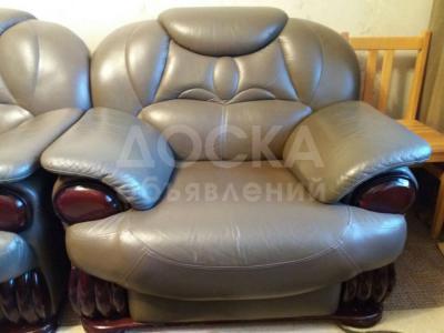 Продаю кожаную мебель 3+2+1 цвет "хаки", состояние идеальное