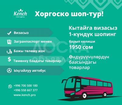 Хоргоско шоп-тур! Тур-фирма «Кенч» Кытайдын чек арасында жайгашкан Хоргос эл аралык чек ара соода борборуна 1-күндүк шопинг-саякатка чакырат (ар жума күнү).