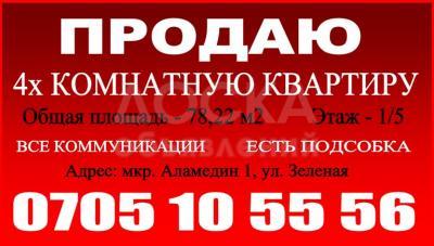 Продаю квартиру 4-ком., 78кв. м., этаж - 1/5, Аламедин-1, ул.Зеленая..