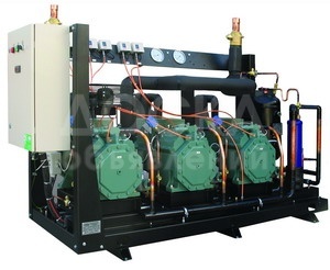 Холодильные централи используются в централизованных системах холодоснабжения для создания искусственного холода. Каждая такая установка представляет собой жесткую раму, на которой смонтированы от двух до шести параллельно работающих компрессоров, а также системы управления, защиты и автоматики. По сравнению с одиночным компрессором такой же мощности холодильная централь имеет ряд преимуществ. В частности, она позволяет регулировать производительность простым отключением компрессоров, создает меньше шума и вибраций, обладает высокой надежностью и расходует меньше электроэнергии благодаря точному соответствию нагрузке. Холодильные централи широко применяются на объектах, где имеется большое количество потребителей холода и предъявляются повышенные требования к отказоустойчивости. Например, в супермаркетах. Системы центрального холодоснабжения не приводят к повышению температуры воздуха и шума в торговом зале и не требуют вмешательства в свою работу обслуживающего персонала. При этом в случае остановки одного компрессора холодильное оборудование продолжает работать в заданном температурном режиме, а значит, исключается необходимость останавливать все предприятие.
