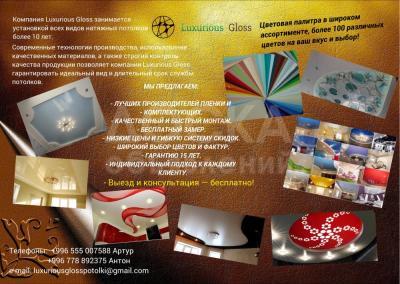 Установка натяжных потолков в Бишкеке по самым приемлемым ценам, быстро, качественно +996 555 00-75-88 Артур