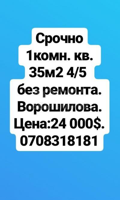 Срочно продаю 1комн квартиру 35м2, 4/5 без ремонта, индивидуалка, балкон. Ворошилова. Цена: 24 000$. Обращаться по тел.:0708318181