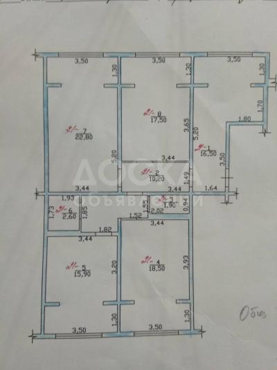 Общая площадь квартиры состовляет 106м2. Квартира на 7-м этаже, 9-этажного дома.