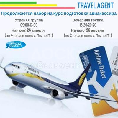 TRAVEL AGENT - Друзья, рады Вам сообщить, что идет набор по курсу “TRAVEL AGENT” (авиакассир). Авиакассир - одна из востребованных профессий в индустрии туризма! Наша страна заметно продвигается в этой сфере, значит это отличный шанс получить востребованную работу, за очень короткий промежуток времени. Все что Вам нужно - это желание и время! мы можем гарантировать Вам, что всего за две недели вы сможете освоить профессию Авиакассира с нуля. вы научитесь работать в 6 системах бронирования билетов, узнаете особенности паспортно - визовых вопросах, и также, ко всему этому, научитесь работать с клиентами. По окончании курсов, Вам выдается сертификат и возможность сотрудничества к Kyrgyz Concept! Для более подробной информации:312 900 833/ 0702911511, 0708985098(whats app)