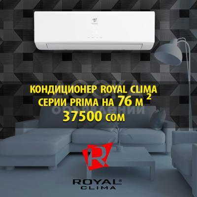 Кондиционеры итальянского бренда Royal Clima серии Prima - данные кондиционеры оснащены такими функциями, как: iFeel, iFavor, Ночной режим, Автоматический режим, Турбо режим, Таймер, Авторестарт, Индикация утечки хладагента и 4 режимами работы: охлаждение, обогрев, осушение, вентиляция. Также во всех кондиционерах присутствуют три фильтра очистки воздуха: фильтр грубой очистки, угольный фильтр и фильтр с ионами серебра.