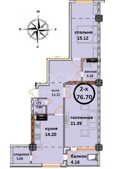 2-х к. квартира в жилом доме «Кунгей» TS групп. 76,7 м2.