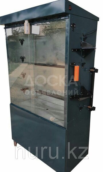 На 4 колесах,корпус полностью термоизолирован,стекло огнеупорное,имеется освещение, 4 шампура и в подарок фирменный рецепт.