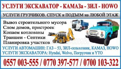 Услуги автомашин ГАЗ – 53, ЗИЛ-сельхозник, КАМАЗ, HOWO.