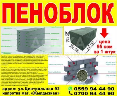 Продаю пеноблоки и пескоблоки Адрес: Город Кара-Балта, улица Центральная 92, магазин "Жылдызкан"